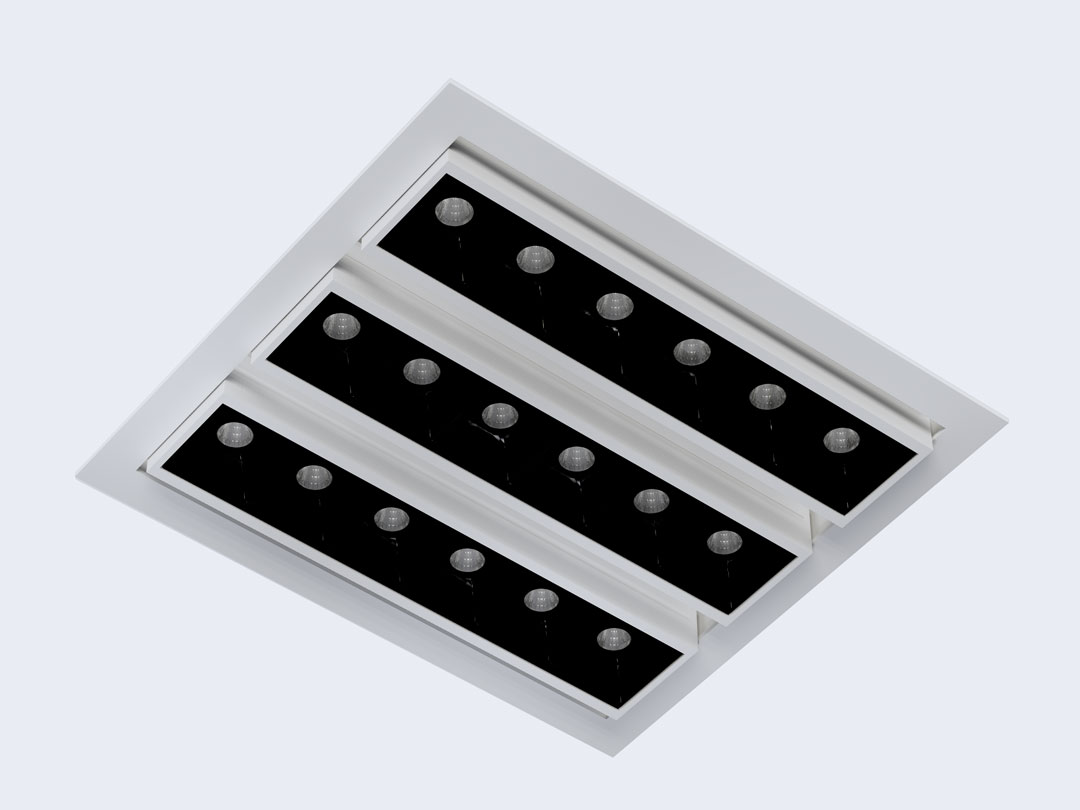 Luminária de embutir com baixo ofuscamento para iluminação de destaque, ou geral, para ambientes residenciais, comerciais, corporativos.