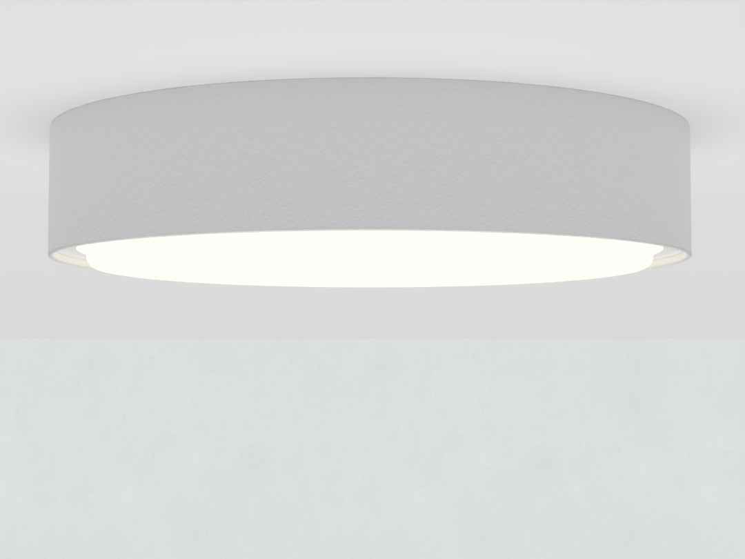 A luminária Pallo proporciona uma iluminação homogênea e suave, com baixo ofuscamento. Instalação de sobrepor.