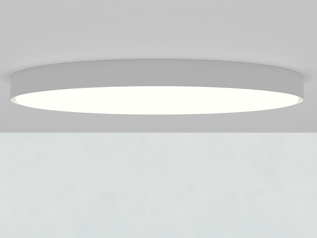 A luminária Pallo proporciona uma iluminação homogênea e suave, com baixo ofuscamento. Instalação de sobrepor.